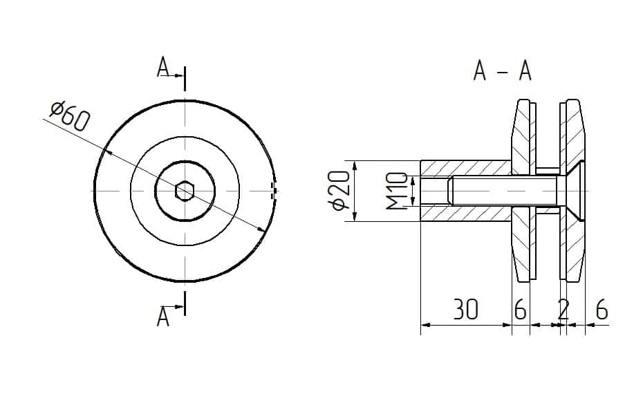 - Avstandshylse ø 20×30 mm – hylse med gjenget hull M10