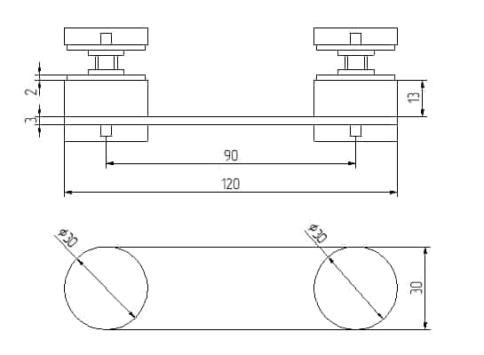 - Punktholdere Ø 30mm med avstand fra flatstang L = 15mm