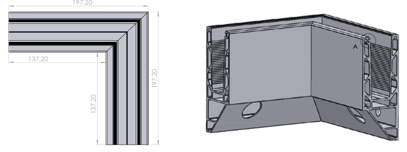 - Aluminium ytre vinkel – montert til siden med forskjøvede monteringshull vertikalt