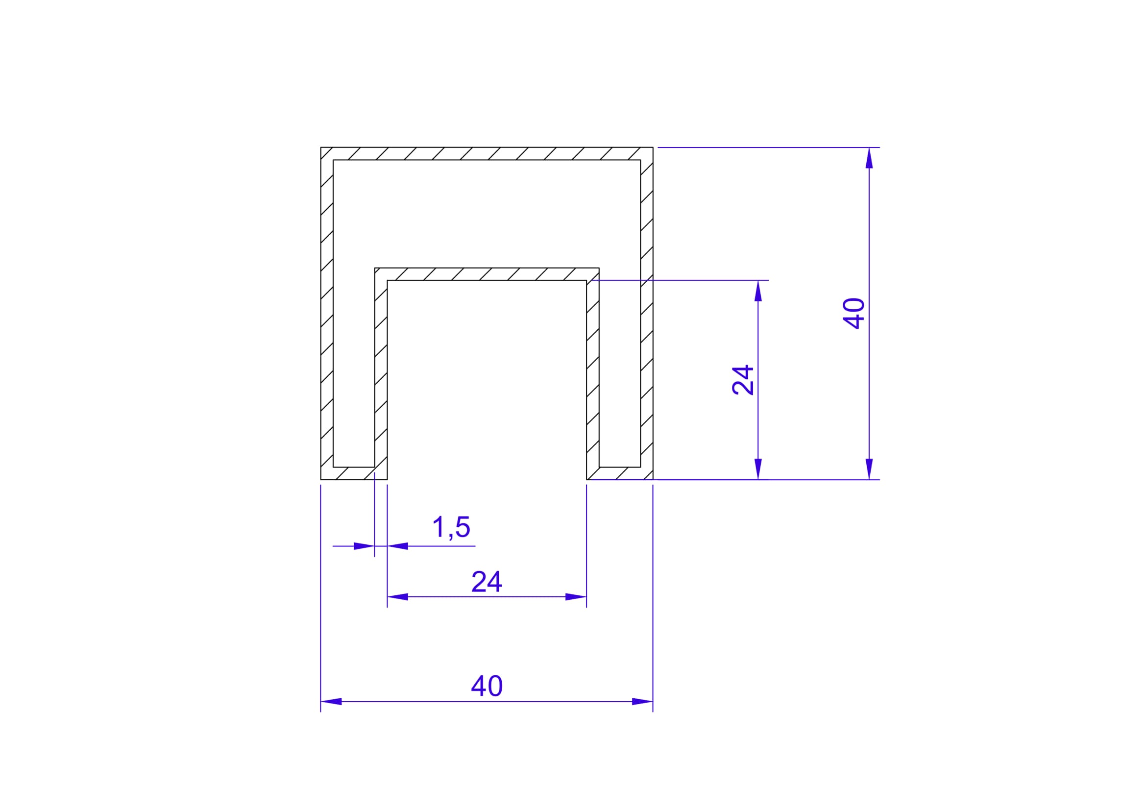 Håndlist – påført 40x40x1,5 mm glass, AISI 304, SATIN / 2,5m
