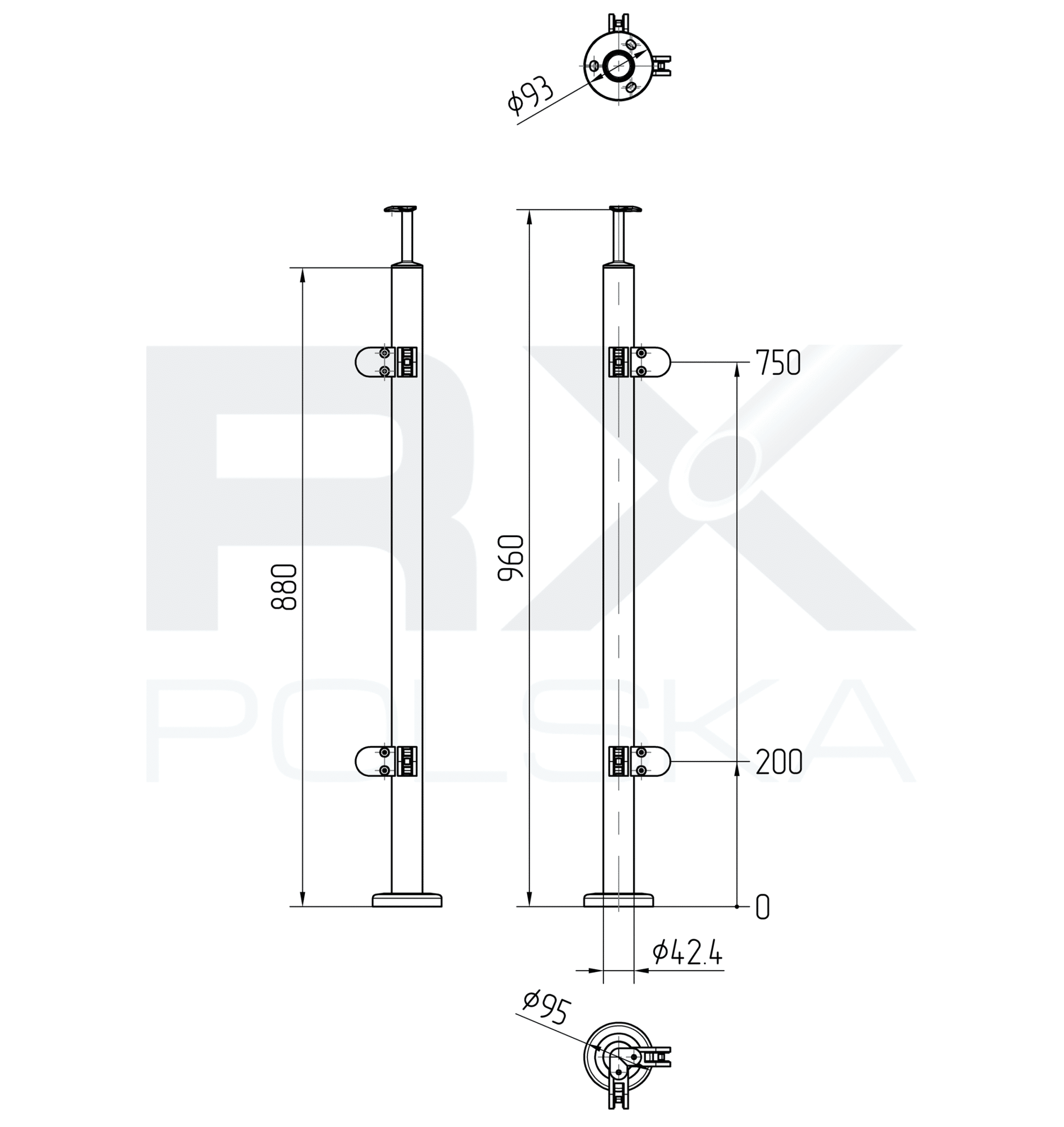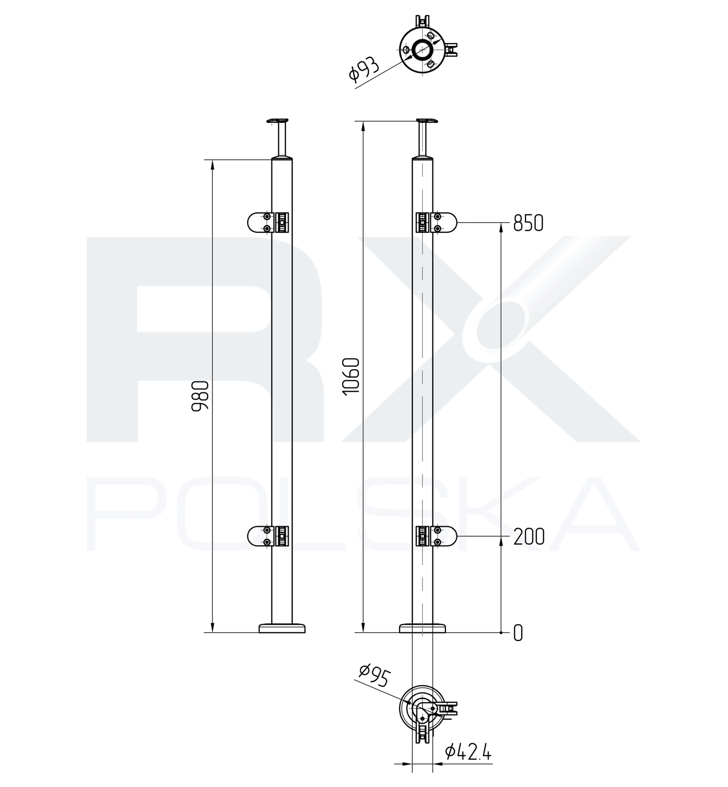 - Stolpen er laget av et rør Ø 42,4x2mm