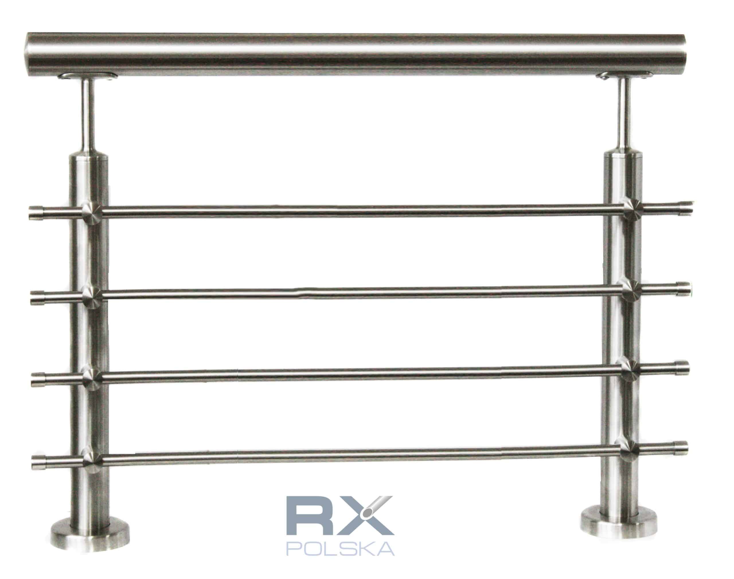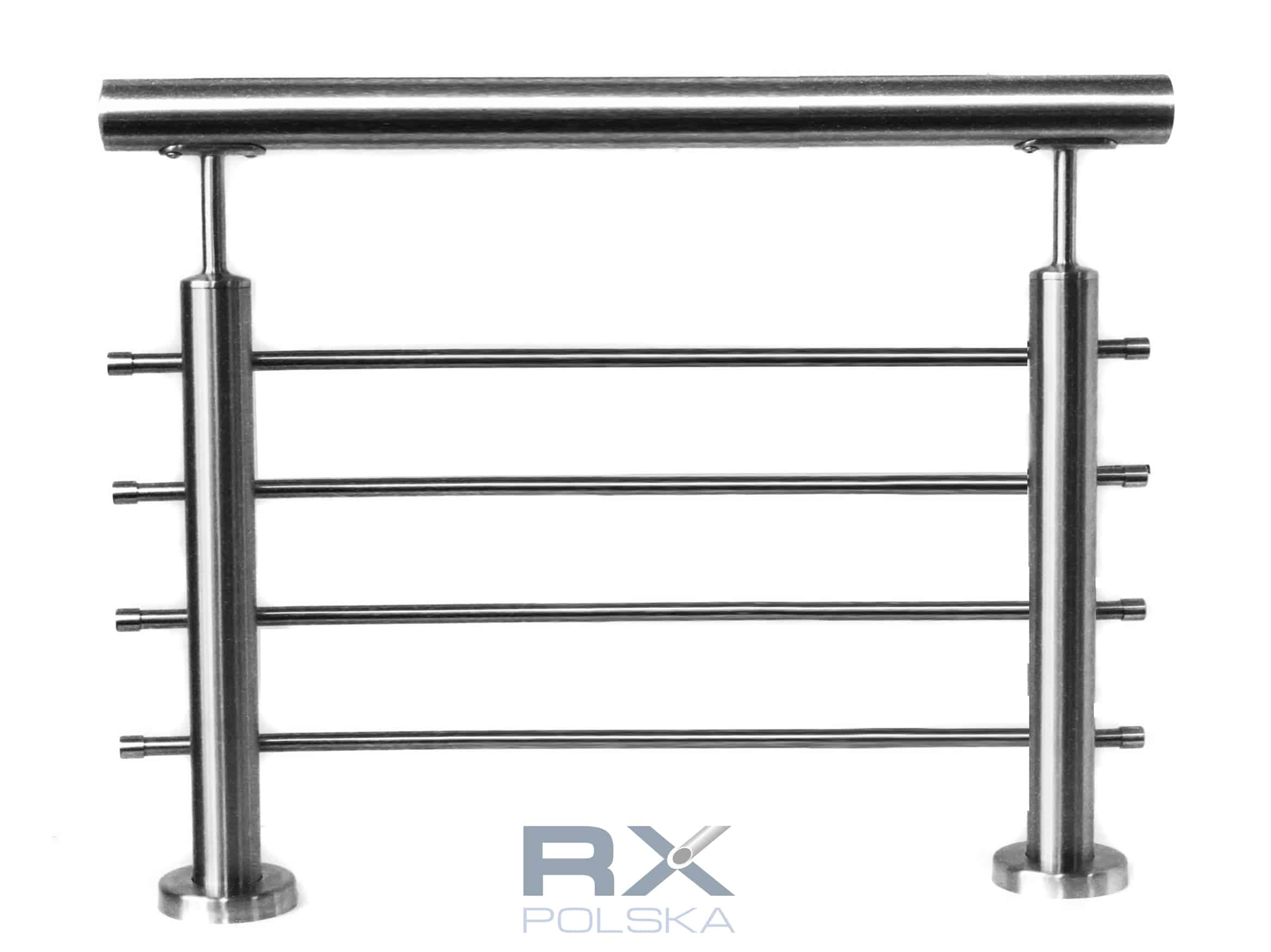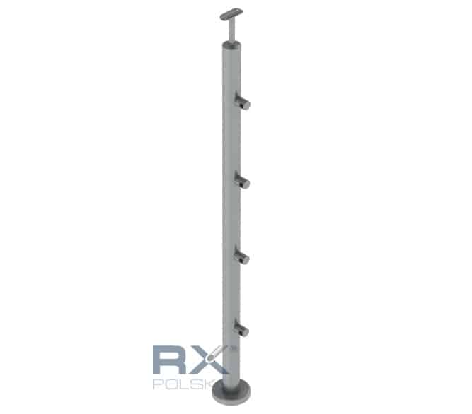 Stolpe RIGHTG 42,4mm med 4 tverrstangholdere for rør 16mm, AISI 304, SATIN