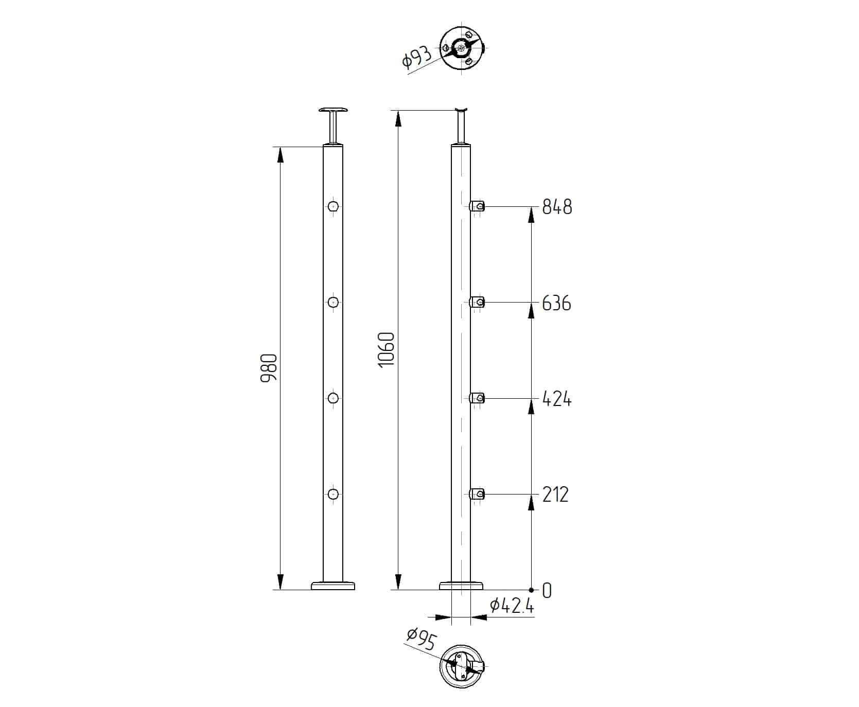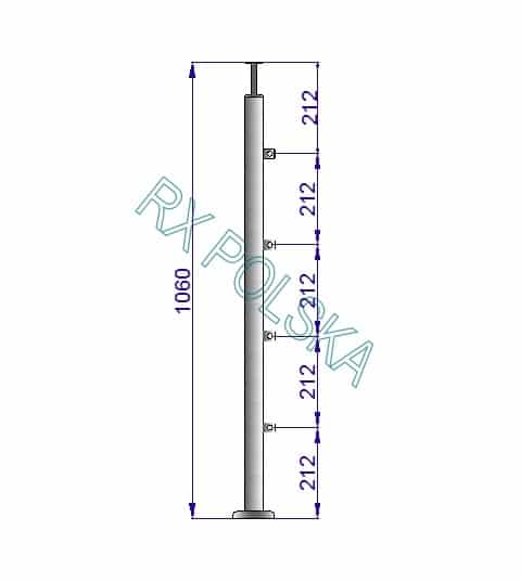 Stolpe laget av rør fi 42,4x2mm (høyde på stolpe med rekkverk 1060mm)