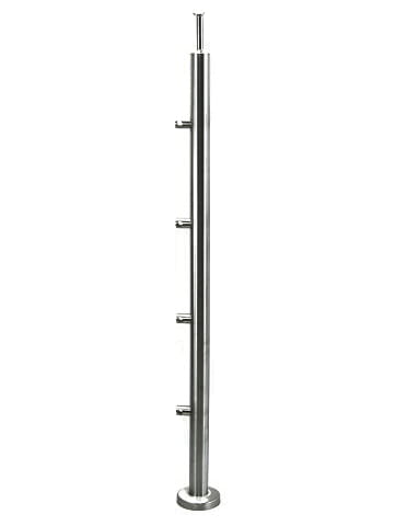 Stolpe VENSTRE 42,4mm med 4 tverrstangholdere for rør 16mm, AISI 304, SATIN
