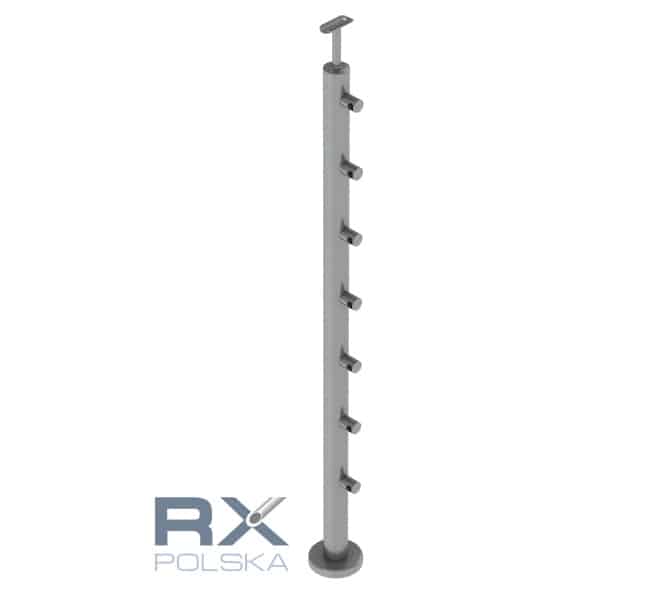 Stolpe RIGHTG 42,4mm med 7 tverrstangholdere for rør 12mm, AISI 304, SATIN