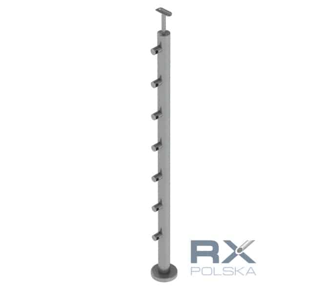 Stolpe 42,4mm med 7 tverrstangholdere for rør 12mm, AISI 304, SATIN